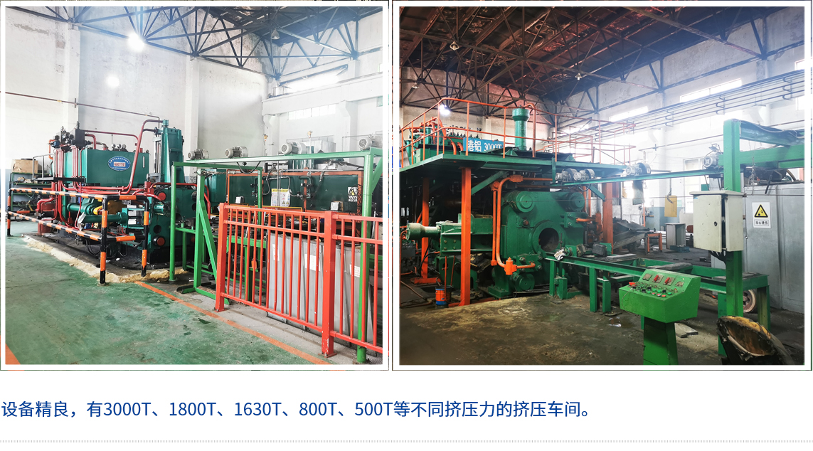 Advanced equipment, professional one-stop service 公司擁有立式鑄造的熔鑄車間:有3000T、1800T、1630T、800T、500T等不同擠壓力的擠壓車間;有給型材熱處理的時效爐、立式空氣循環淬火爐等各車間工序,可為您加工生產鋁合金建筑、工業、交通、電子、散熱器、裝飾、民用等多種規格及狀態的管、棒、異型材。